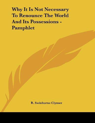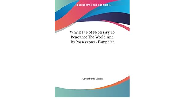 Why It Is Not Necessary To Renounce The World And Its Possessions Pamphlet Amazon Co Uk Clymer R Swinburne 9781428679214 Books